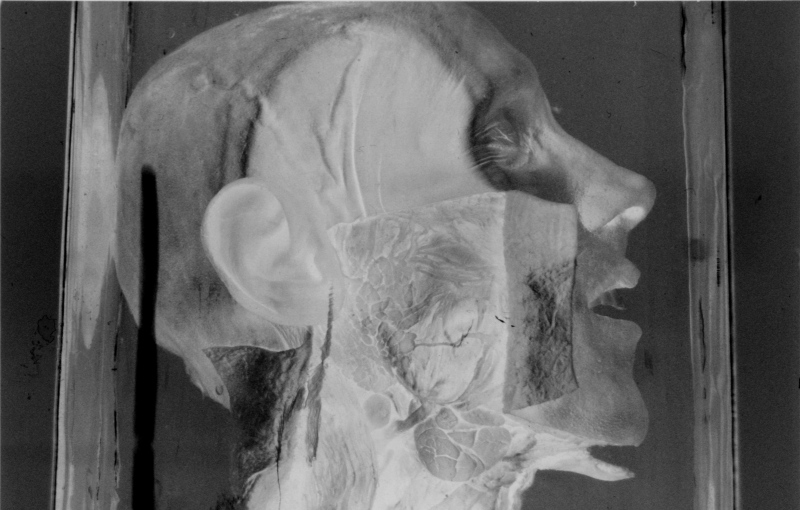 Analog projection, poetry and sound performance. The text written specially for this performance gradually reveals the picture of the fate destroyed by the current of time. This narration is illustrated with manipulated images of the exhibits of the Medical History Museum of P. Stradiņš Museum and the RSU Museum of Anatomy, which in the context of the performance acquire a clearly existential message. The ascetic sound accompaniment is created entirely on site, using only the poet's voice and the noise generated by the film projectors, thus merging the living with the mechanical.