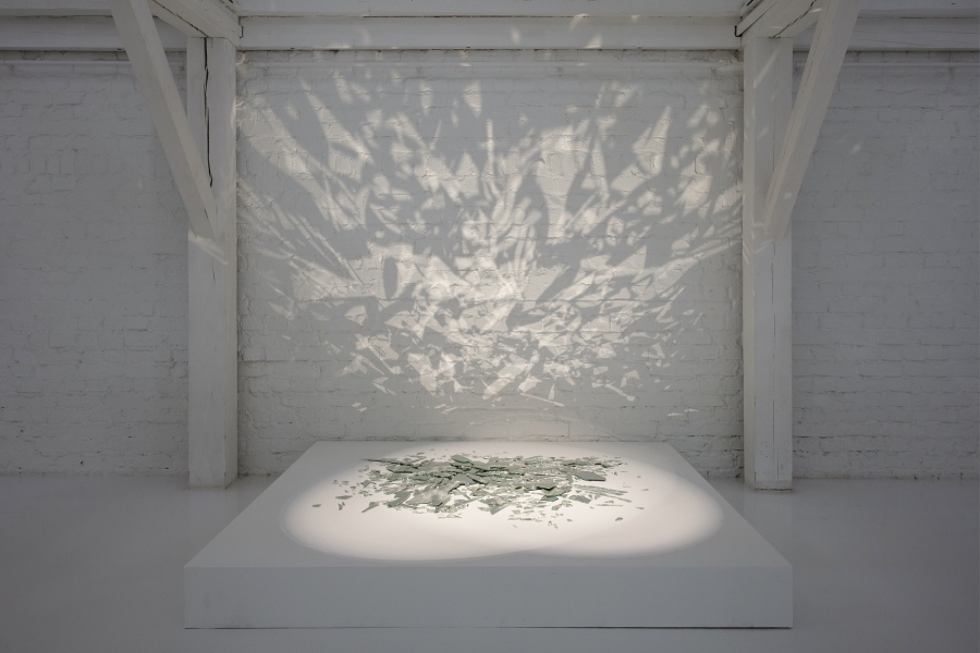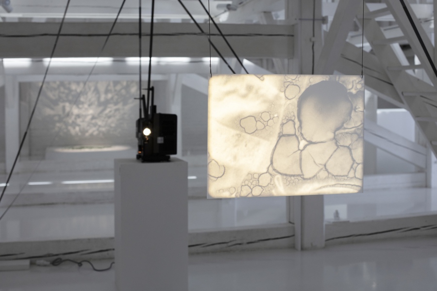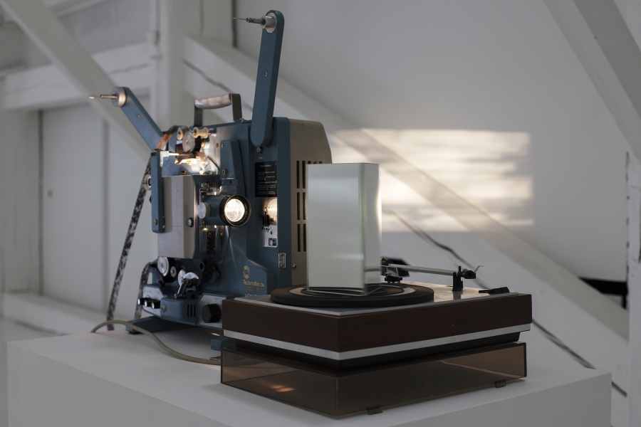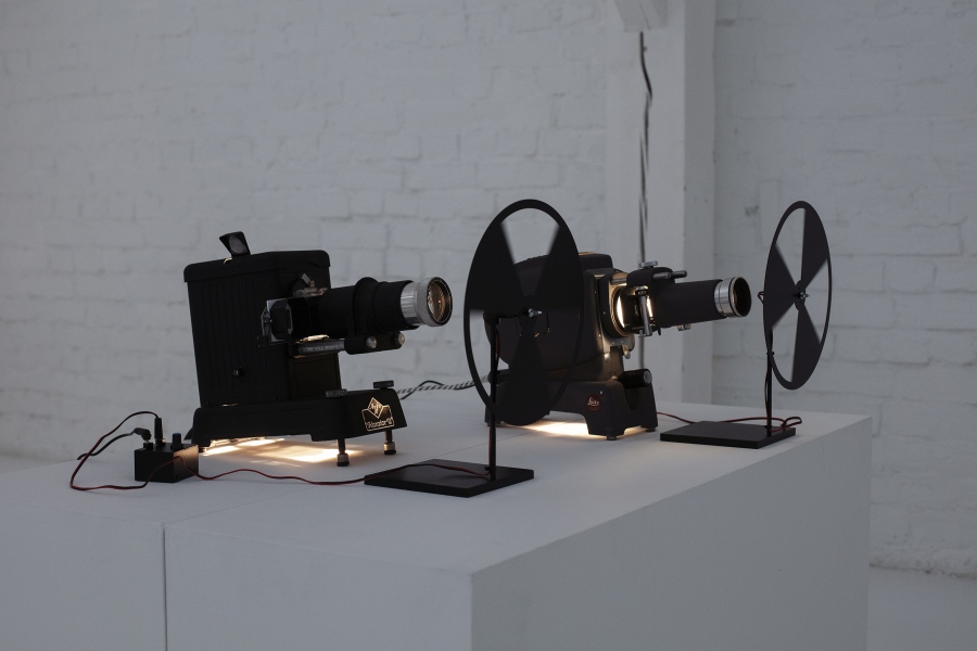 The exhibition presents my 16 mm film loops and spatial image projections. Their mechanical nature interacts with the architecture of the space to create a slight sense of alarm, reminding us of the fragility and mortality of the material world. At the centre of the exhibition is the film Thanatophobia,made together with the Irish filmmaker Michael Higgins. It was made between 2016 and 2022 in Ireland and Latvia, and manifests our shared interest in the subject of fear, darkness and death. At the same time, the illuminations of the other spatial photochemical objects expand on the subject, representing light and darkness as fundamental elements of the visible and invisible world.